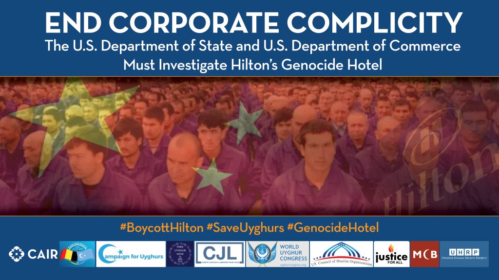 (WASHINGTON, D.C., 10/20/21) – The Council on American-Islamic Relations (CAIR), along with other members of the #BoycottHilton Coalition made up of more than 40 American and international organizations, today released letters calling on the U.S. Department of State and U.S. Department of Commerce to conduct separate investigations into whether Hilton Worldwide Holdings Inc. and the … Continue reading #BoycottHilton Coalition Asks Secs. Antony Blinken, Gina Raimondo to Probe Hilton Worldwide, Chinese Partner for Complicity in Uyghur Genocide