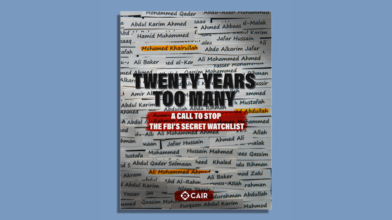 WHAT: Release of CAIR Report, ‘Twenty Years Too Many, A Call to Stop the FBI’s Secret Watchlist’