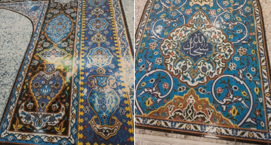 Those tiles are to be used to decorate the “mihrab,” a niche indicating the direction of prayer, of the Manassas Mosque in Manassas, Va. They were a gift from a mosque in Iran to the Virginia mosque and include verses from the Quran, Islam’s revealed text, such as: “Indeed, We see you [O Prophet Muhammad, PBUH] turning your face toward heaven. Now We will make you turn toward a direction of prayer that will please you. So turn your face towards the Sacred Mosque in Mecca — wherever you are, turn your faces towards it.” The Holy Quran, 2:144